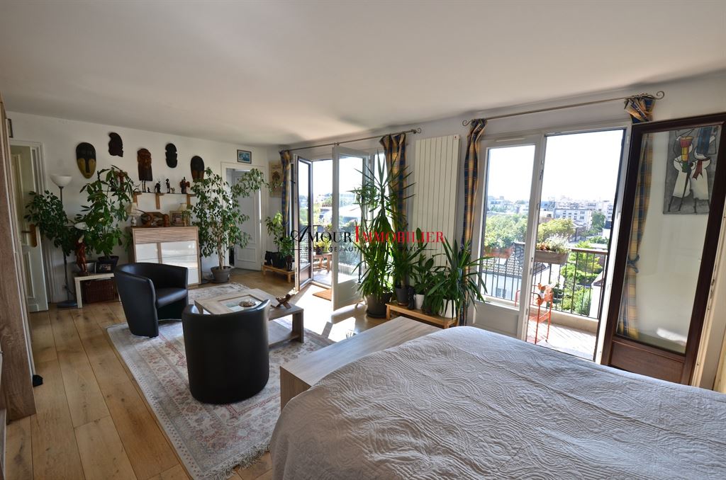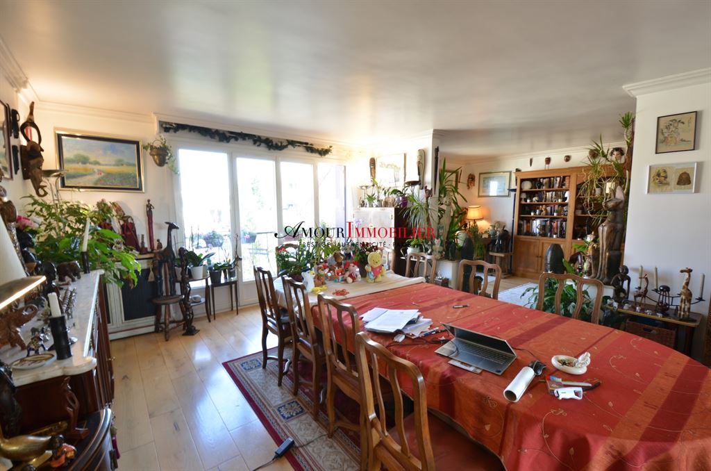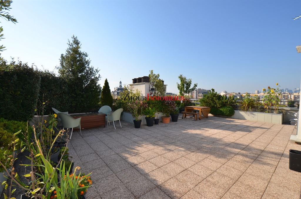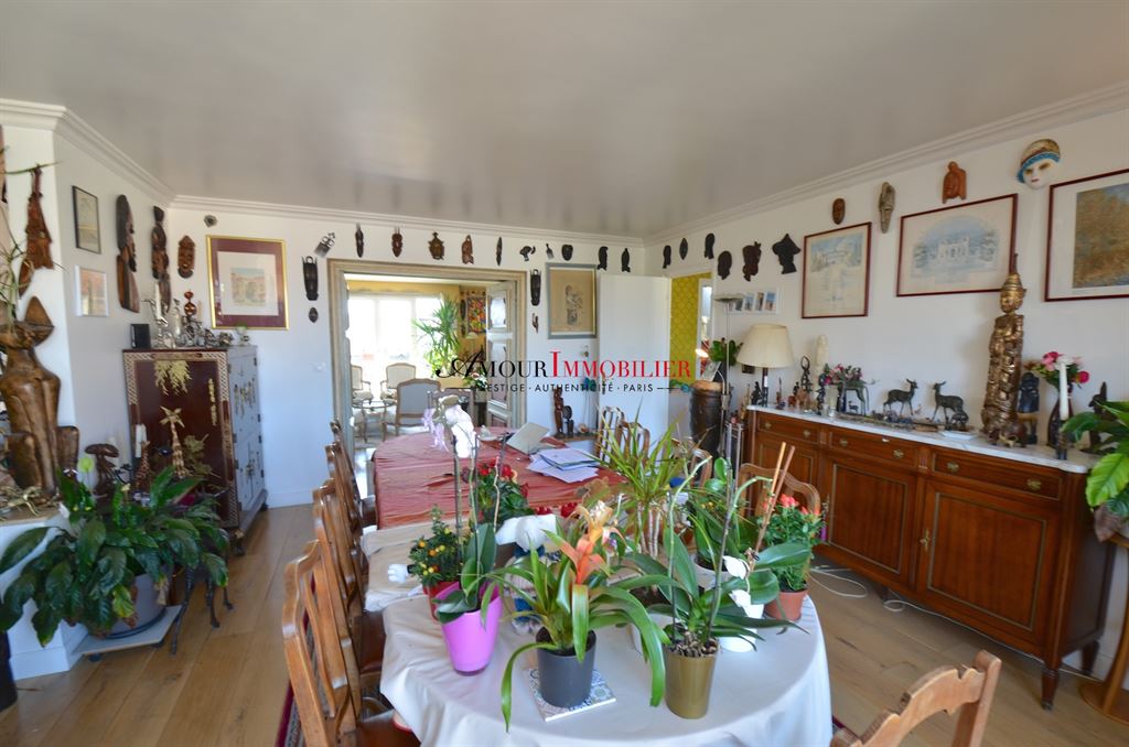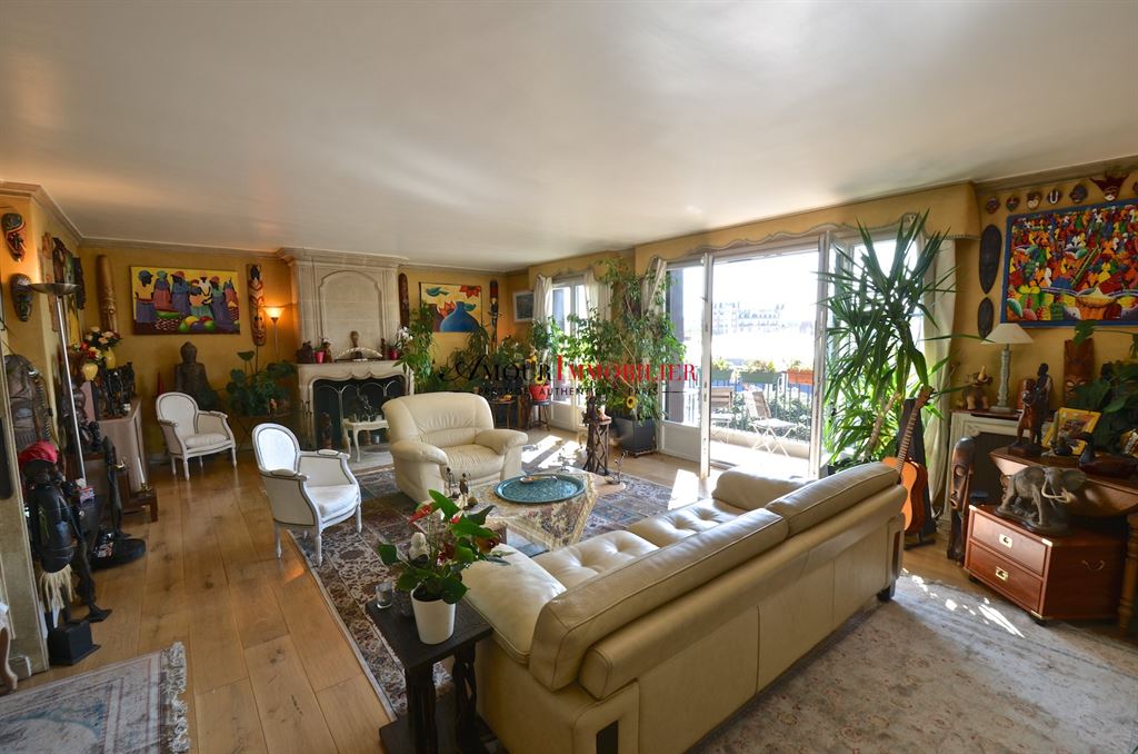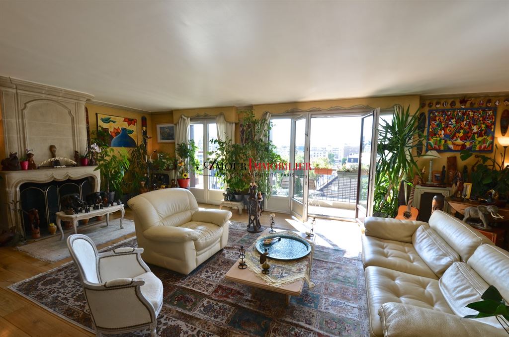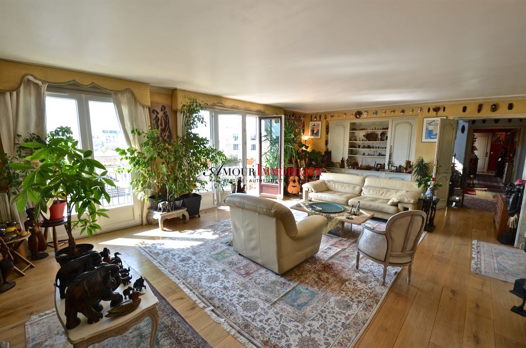 Asnières / Mairie / Centre – duplex 253 m² – 4 / 5ème étage – terrasse 163 m² – 5 chambres. Idéalement situé à proximité de la mairie et du square Maréchal Leclerc, au calme au dernier étage d’un immeuble récent de 1966, bel appartement familial traversant ensoleillé en duplex comprenant : galerie d’entrée, grand double séjour exposé sud-ouest avec balcons et vue dégagée, petit salon, salle à manger, grande cuisine dinatoire, 4 chambres, dressing, salle de bains, salle d’eau. A l’étage, salon d’hiver, chambre, et grande terrasse privative arborée de 163 m² avec vue panoramique. Rare. Ensoleillé. Calme. Fonctionnel. Cave. Deux grands boxes. Pour plus d’informations ou pour organiser une visite, merci de contacter Martine MARIOTTI au 06 10 01 36 25 ou votre interlocuteur habituel chez AMOUR IMMOBILIER.