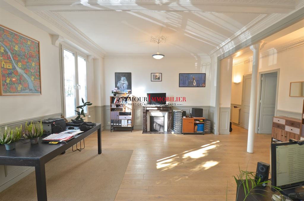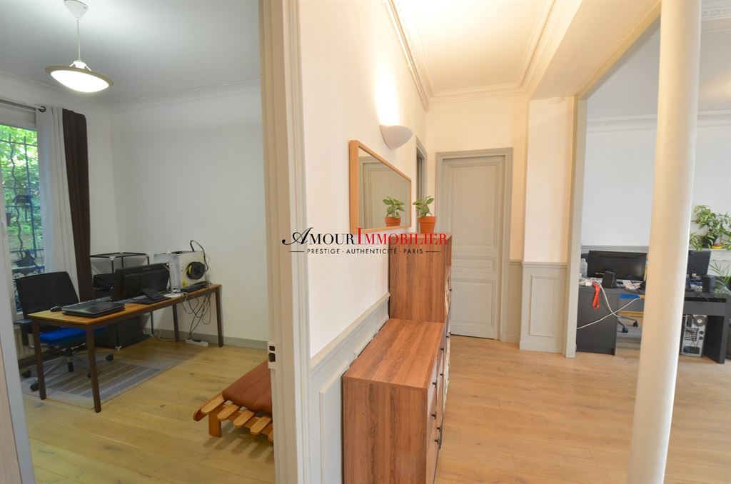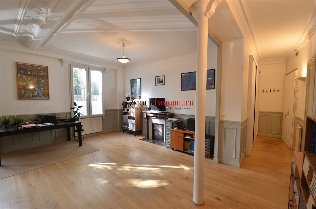 Asnières / Mairie / Centre – appartement 63 m² – Rdch – 1/2 chambres. Idéalement situé à proximité de la mairie et du square Maréchal Leclerc au calme dans un immeuble haussmannien de 1910, bel appartement ensoleillé traversant avec de baux volumes (hauteur sous-plafond : 3 m) comprenant : entrée, double séjour (possibilité 2ème chambre) exposé plein sud sans vis-à-vis avec parquet, moulures et cheminées, cuisine équipée, chambre, salle de bain, wc séparé. Rare. Ensoleillé. Calme. Cave. Possibilité profession libérale. Exclusivité Amour Immobilier. Pour plus d’informations ou pour organiser une visite, merci de contacter Laurent BOURGNINAUD au 06 13 60 57 72 ou votre interlocuteur habituel chez AMOUR IMMOBILIER.
